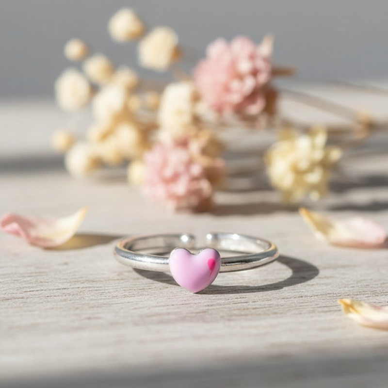 Ce qui fait toute la particularité de cette bague, c'est le symbole universel de l'amour et de l'affection qu'elle arbore en son centre - un cœur rose délicat fabriqué en émail de qualité supérieure. La couleur rose n'est pas seulement un choix esthétique, mais une déclaration de douceur, de tendresse et de créativité, des qualités souvent associées à l'enfance.