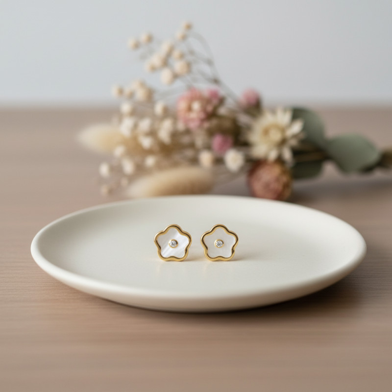 Laissez vous donc séduire par cette magnifique paire de puces d'oreilles qui sublimera à coup sur toutes les petites filles. Délicates et très légères, ces boucles d'oreilles sont réalisées en or jaune, à la finition brillante et polie. Soignées et scintillantes, chacune de ces puces vous dévoile un ravissant contour en forme de fleur, mesurant 6,20 mm de diamètre. L'intérieur quant à lui est réalisé à partir de nacre blanche, soulignée par un magnifique zircon décoratif en serti clos, situé en son centre.