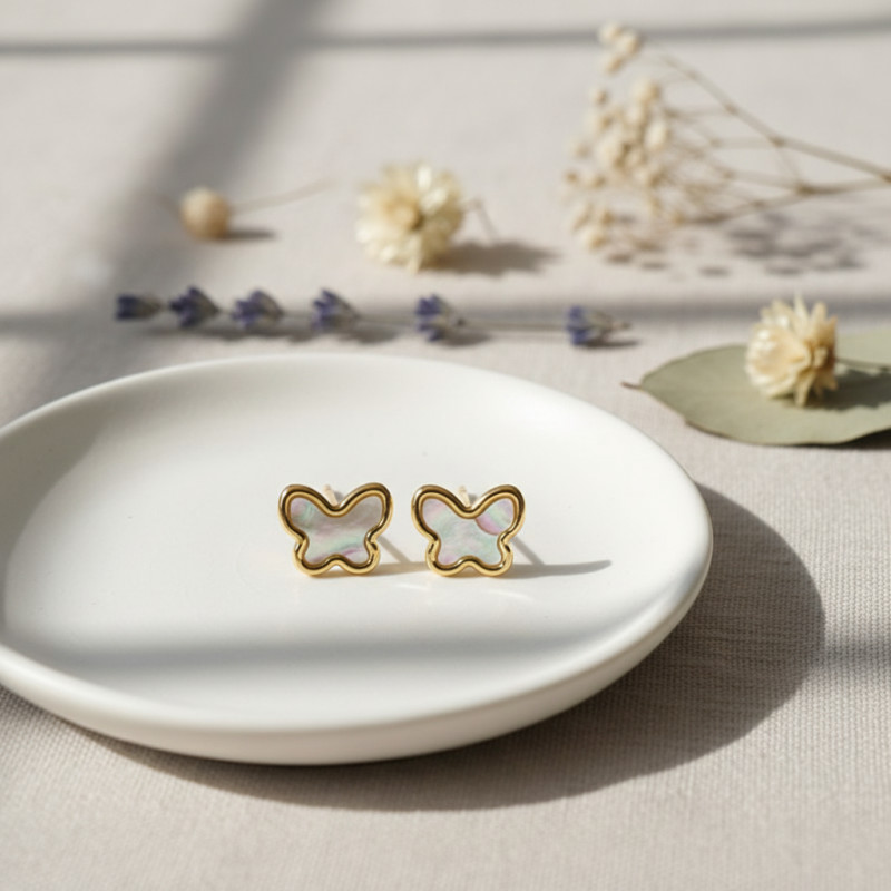 Votre enfant est fan de papillon ? Misez sur cette paire de boucles d'oreilles à la fois sublimes et fascinantes. Composée d'or jaune de qualité 375/1000 ou 750/1000, chaque boucle présente au centre une magnifique pierre nacrée pour un résultat original. Elle mesure chacune 5 mm de longueur pour 4 mm de largeur. Elle présente des nuances changeantes qui diffusent de la lumière et qui sublimeront les oreilles de votre enfant.