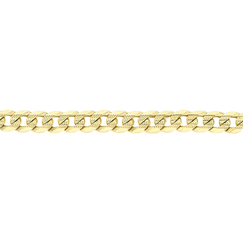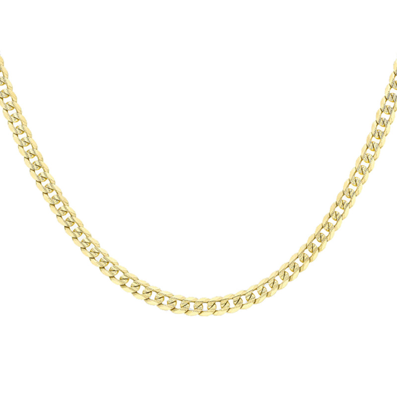 Nous avons choisi parmi ses ravissants modèles cette élégante chaîne gourmette qui vous parera avec distinction à chaque port. Elle est conçue en or jaune 375/1000 (9K) et arbore un aspect saisissant. Arborant une maille gourmette diamantée formant une longueur de 45 cm, elle est formée à partir de maillons disposant d'une largeur de 5,50 mm. Ces derniers sont magnifiés par une finition texturée et un aspect plat et vous permettront de porter cette chaîne lors de grandes et de petites occasions.
