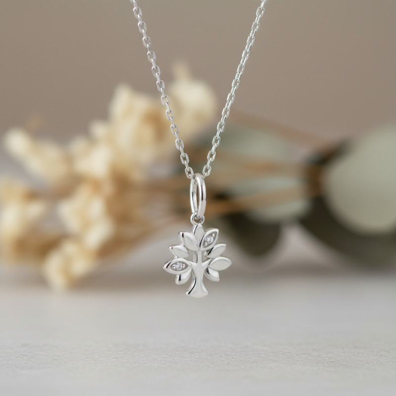 Collier pendentif arbre de vie, Argent & Oxydes, 43cm