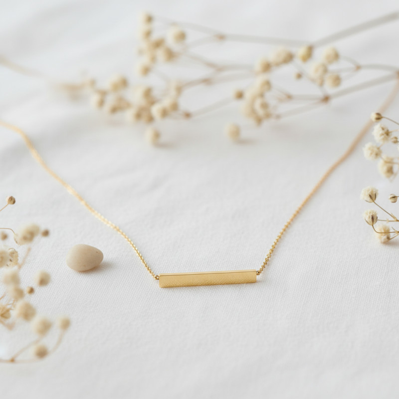 Ce collier en or à un poids d'or d'environ 1,70 gramme et se termine avec un fermoir mousqueton. À noter qu'il fera un élégant ajout à votre tenue lors d'une soirée entre amis. Nous vous offrons la possibilité de le personnaliser en gravant sa plaque avec l'inscription de votre choix.