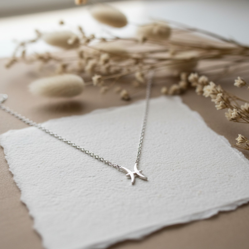 Découvrir l'élégance d'un bijou qui ne se contente pas de sublimer votre apparence, mais qui raconte également votre histoire personnelle. Ce collier signe astrologique du Poissons, confectionné à partir d'argent 925, est plus qu'un simple accessoire. Il incarne l'essence même du signe du zodiaque qu'il représente, pour offrir à celui ou celle qui le porte, un lien profond avec ses traits de caractère les plus intimes.