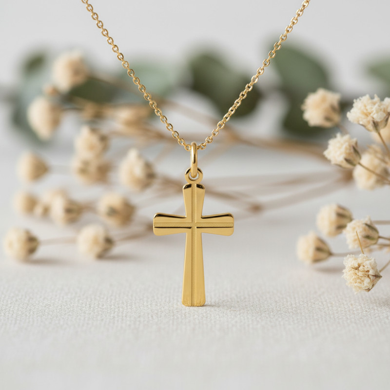 Cette magnifique croix en or mêle à son élégance un charme intemporel qui en fait une pièce épurée. Elle affiche une largeur de 13 mm pour une hauteur de 21 mm et un poids d'or moyen de 0,75 gramme. Sa bélière vous permet de l'associer à une chaîne de votre choix pour un plus bel effet. Avec sa symbolique, elle ferra un cadeau de choix lors d'un baptême, d'un anniversaire ou pour un événement spécial.