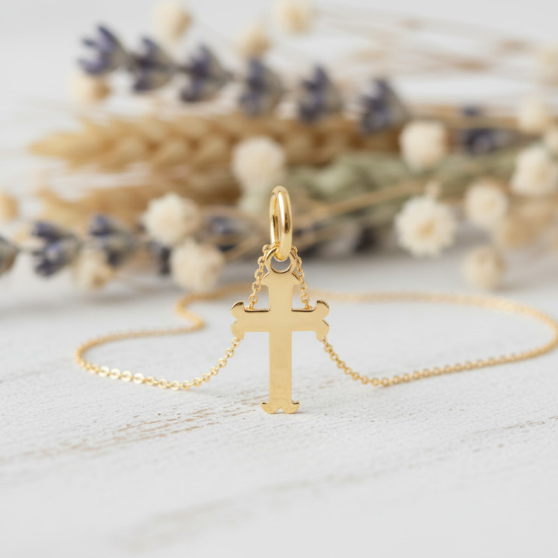 La maison a choisi de vous proposer cette élégante croix en or jaune 375/1000 (9K) ou 750/1000 (18K) qui vous suivra durant de longues années. Elle présente des bâtons plats aux bords arrondis et stylisés. Concernant ses dimensions, elle propose une hauteur de 18 mm ainsi qu'une largeur de 9 mm. Comptez un poids d'or pour cette croix de 0,40 gramme. Cette croix sera parfaite pour offrir en tant que cadeau pour une naissance, un baptême ou une communion.