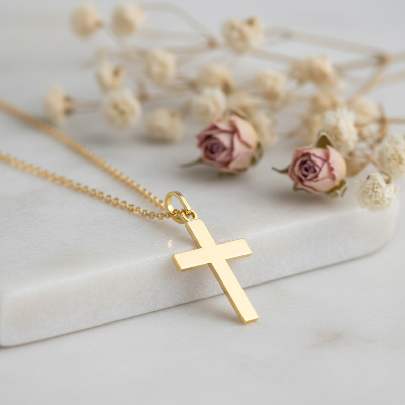 Cette croix est disponible dans 2 qualités d'or : en or jaune 375/1000 (9K) ou 750/1000 (18K). Le poids de ce bijou varie en fonction du modèle sélectionné :