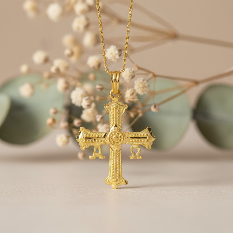 Nous avons choisi en collaboration avec Lumiosa de vous proposer cette somptueuse croix or. Il s'agit d'un pendentif croix réalisé entièrement en or jaune 750/1000 (18K). Cette croix or a la particularité de représenter la croix Covadonga. Cette croix serait le symbole de la victoire de Don Pelayo lors de la bataille de Covadonga. Vous trouverez également deux lettres présentes qui sont Alpha et Omega et représentent la première et dernière lettre de l'alphabet grec. Ces lettres symbolisent le début et la fin. Cette croix or dispose des dimensions suivantes : 19 x 25 mm.