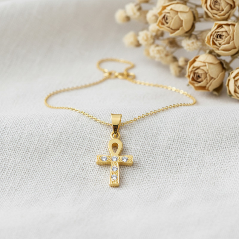 Nous avons sélectionné pour vous cette délicate croix de vie égyptienne qui vous sublimera en toute occasion. Fabriquée en or jaune 750/1000 (18K), cette dernière se pare d'une finition polie et présente un éclat doré saisissant qui se reflétera sur votre allure. Ce pendentif en forme de croix “Ankh” trouve son origine dans l'Égypte Antique et incarne la vie et l'immortalité. Appelé également croix ansée ou clé de vie, ce symbole constitue un fort talisman.