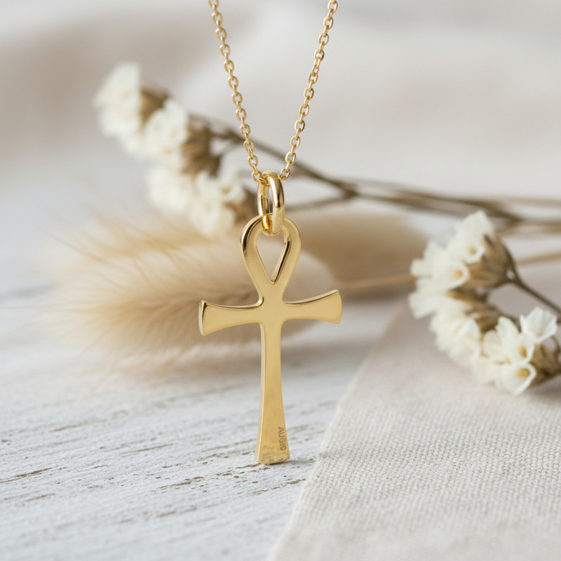 Vous êtes à la recherche d'un bijou symbolique à offrir lors d'une occasion spéciale ? Succombez alors au charme de ce ravissant pendentif croix, réalisé en or jaune 750. Il s'agit plus précisément d'une croix égyptienne. Connue également sous le nom de Ankh, cette croix ansée symbolise la vie et la fertilité, représentant l'union d'Osiris et d'Isis. Ce bijou sera donc une très belle idée cadeau pour une personne passionnée par l'Égypte et ses mystères. En ce qui concerne ses dimensions générales, cette croix mesure 23 mm de hauteur sur une largeur de 13 mm et possède un pois d'or moyen de 0,75 gramme.