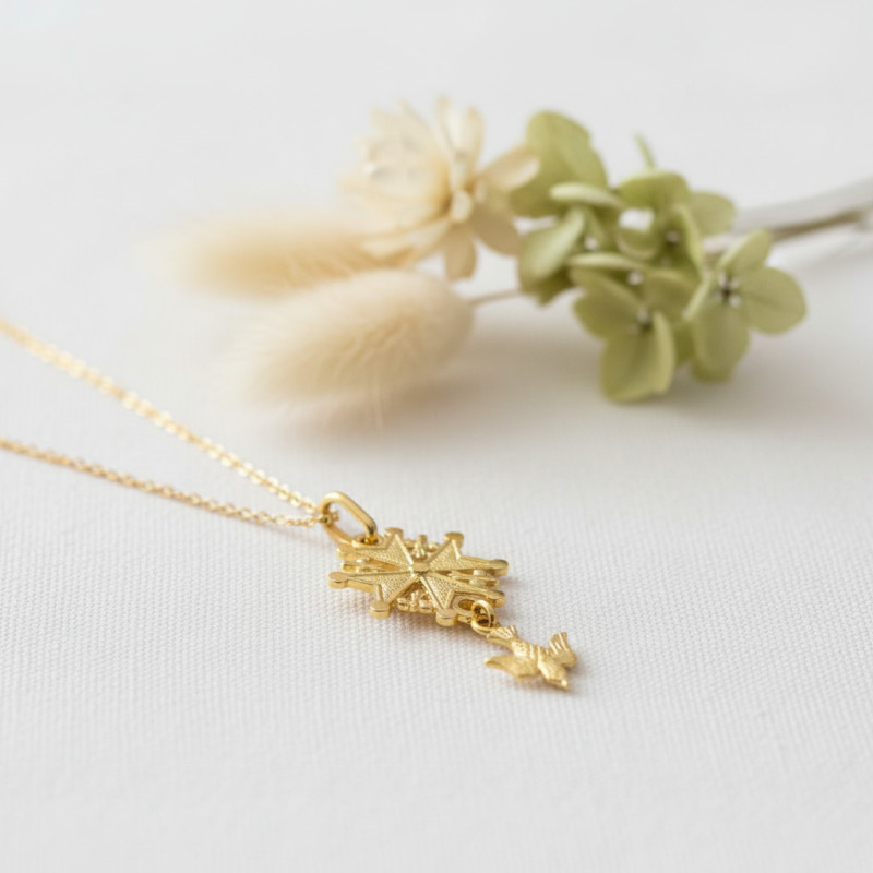 Comme cette sublime croix protestante réalisée entièrement en or jaune 375/1000 (9K). Aussi appelée croix huguenote, cette croix est remplie de symbolique représentant la communauté des protestants. Elle se compose d'une croix et d'un pendentif en forme d'oiseau qui symbolise le Saint-Esprit. De ce fait, cette croix sera un superbe cadeau à offrir lors d'un baptême protestant par exemple.