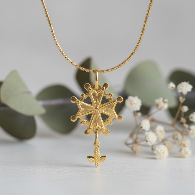Comme cette superbe croix que nous vous proposons qui est réalisée entièrement en or jaune 750/1000 (18K). Elle est de type croix Huguenote qui n'est autre que le symbole protestant. Les dimensions de la croix sont 20 x 33 mm sans la bélière et 20 x 36 mm avec la bélière. Cette petite croix discrète est idéale et peu ostentatoire pour un enfant ou un femme. Enfin, comptez un poids d'or moyen de 1,75 gramme pour cette croix Huguenote.