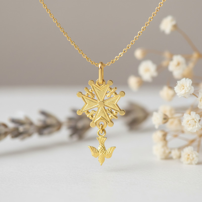 Cette croix dont le design a été réalisé par des orfèvres nîmois vers 1688, pèse 1,65 gramme et pourra être portée avec n'importe quel type de vêtement sans restriction. Il sera également parfait comme cadeau lors d'un anniversaire ou d'une occasion particulière.