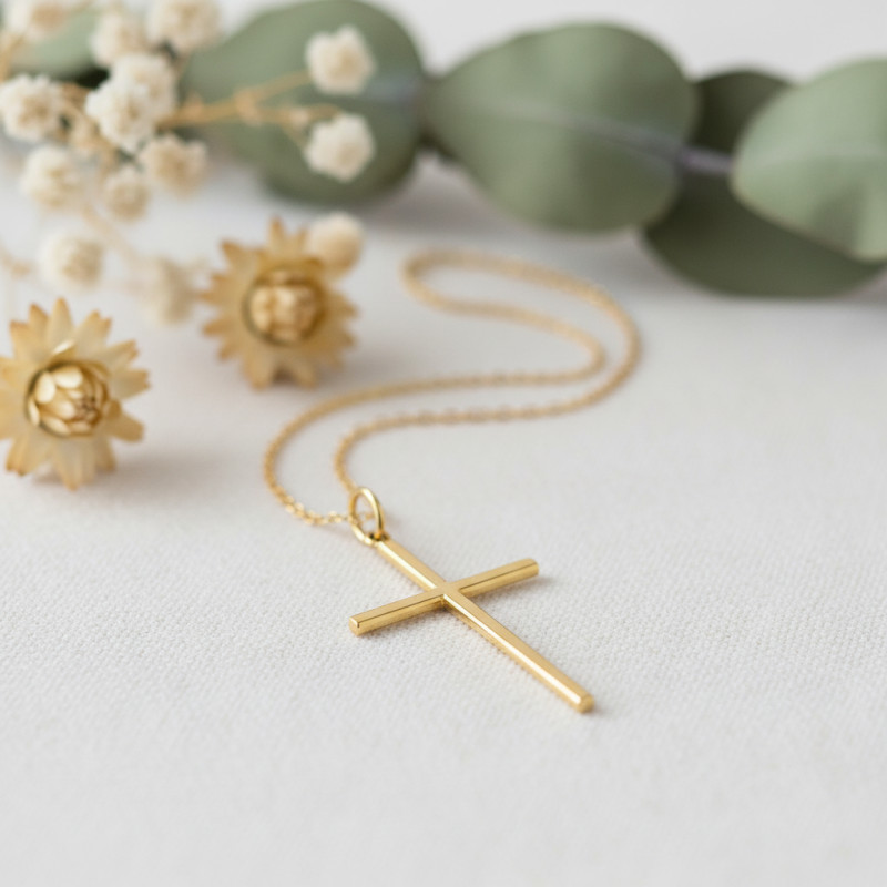 Elle vous propose de craquer pour cette élégante croix réalisée en or jaune 375/1000 (9K) qui scintillera durant des années. Elle se compose de deux bâtons plats avec une sublime finition lisse à section carrée. Cette croix est disponible en plusieurs dimensions :