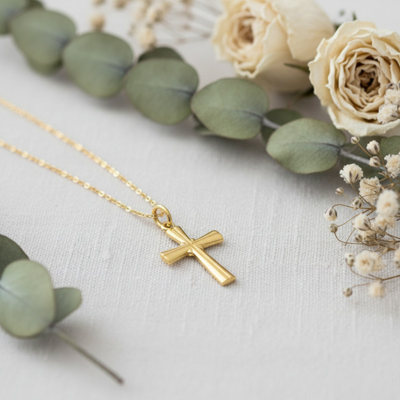 L'originalité de cette belle croix en or jaune 750/1000 (18K) réside dans ses lignes sobres et épurées. Elle brille de mille feux grâce à sa finition polie et offre un bel éclat qui charmera les hommes et les femmes en quête d'un bijou distingué. Ses contours arrondis ainsi que son allure classique et raffinée ne manqueront pas de vous séduire. De plus, sa symbolique religieuse en fait une création prisée.