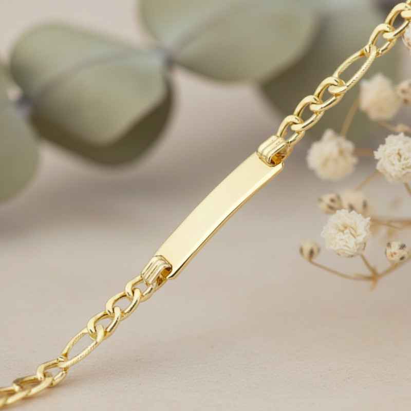 Comme cette somptueuse gourmette homme qui est réalisée entièrement en or jaune 375/1000 (9K) pour durer durant de longues années. Cette gourmette se compose d'une maille de type figaro qui fait tout le charme du bijou. Elle dispose d'une longueur de 18 cm et d'une largeur de 2,80 mm. Vous trouverez en son centre, une plaque à détails striés. La plaque est de dimensions 4,90 x 19,50 mm.
