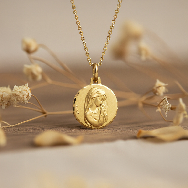 Vous trouverez ce pendentif décliné dans différentes matières telles que l’or jaune, l’or blanc, l’argent 925, la nacre, le corail, etc. Bien qu’il soit majoritairement présenté dans sa forme la plus épurée, il existe aussi certains modèles plus sophistiqués agrémentés de pierres fines ou précieuses.