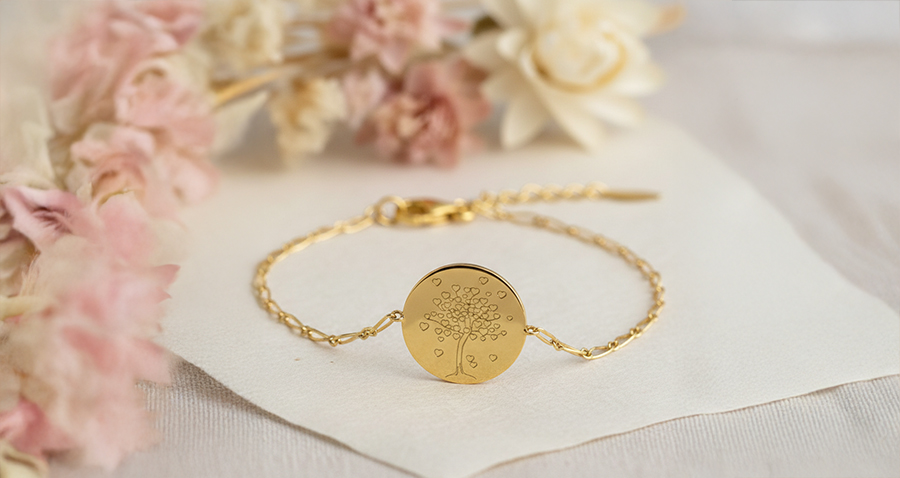 Pour les familles qui veulent une approche laïque, le bracelet jeton peut être orné de symboles universels comme l’arbre de vie, la colombe, le soleil, le signe astrologique de l’enfant, etc. Ces gravures donnent une portée symbolique tout en restant non religieuse.
