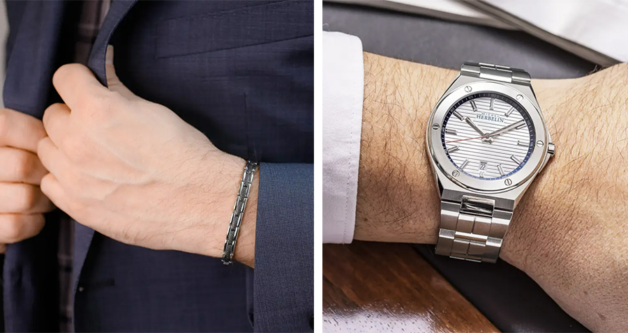 Pour les hommes, l'acier est souvent utilisé dans la conception de montres, de bracelets, de chaînes et de bagues. L'acier peut être travaillé pour obtenir un aspect poli et brillant ou un fini mat plus discret.