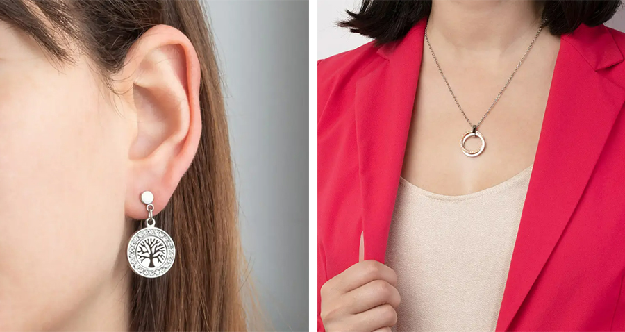 Concernant les femmes, il est apprécié pour sa capacité à compléter parfaitement n'importe quelle tenue. Qu’il s’agisse d’une paire de boucles d'oreilles raffinées, d’un collier audacieux ou d’une bague ornée d'une pierre scintillante, l'acier offre une gamme de choix infinie.