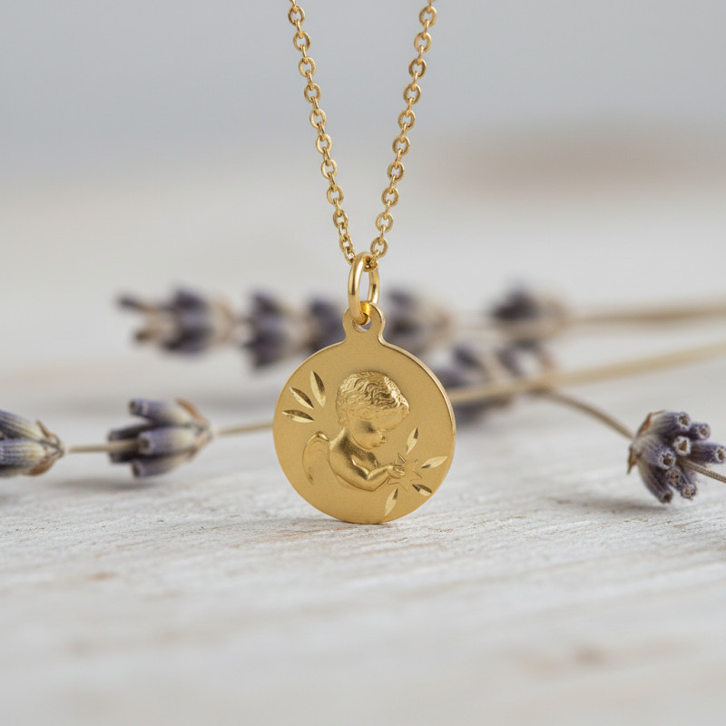 Médaille Précieuse vous propose de craquer pour ses médailles baptême qui sont de grande qualité. Ce bijou étant important pour l'enfant et les parents, nous proposons des médailles à thématique comme une médaille vierge, une médaille arbre de vie ou comme ici une médaille ange.