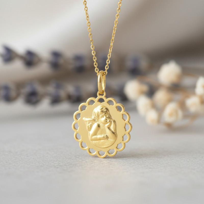 Voici la Médaille Ange ronde contour Ajouré, Or Jaune 375, une merveille qui capture l'innocence et la grâce dans son éclat doré. Conçue pour les enfants et les femmes, chaque contour ajouré de cet ornement est une ode à la délicatesse. Forgée en Or Jaune 375/1000 (9K), cette médaille s'épanouit dans une couleur jaune rayonnante. Avec un poids léger de 0,89 g, elle devient un compagnon idéal, discret mais éclatant. Et pour parachever sa distinction, une garantie de 2 ans vous est offerte.