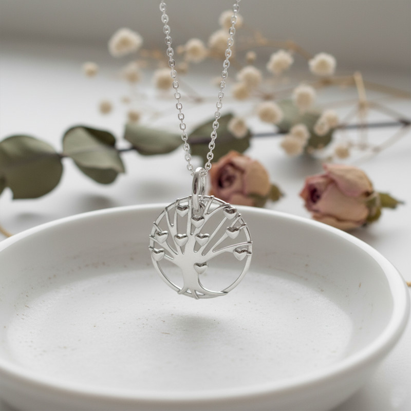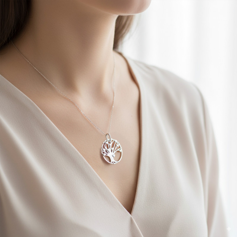 Nous avons choisi pour vous ce ravissant bijou d'allure épurée et sobre qui ne passera pas inaperçu. Il est conçu en argent 925 et se pare d'une belle finition polie lui conférant une brillance qui ne laissera personne indifférent. Il est décoré au centre par un motif ajouré représentant un arbre de vie maintenu par un cercle et arborant des feuilles en forme de cœur, alors que sa face arrière est plate et lisse. À la fois poétique et symbolique, ce motif représente l'immortalité, mais également la force, l'harmonie et la prospérité. Il sera un beau cadeau à offrir pour témoigner de l'estime que vous portez à un être cher.