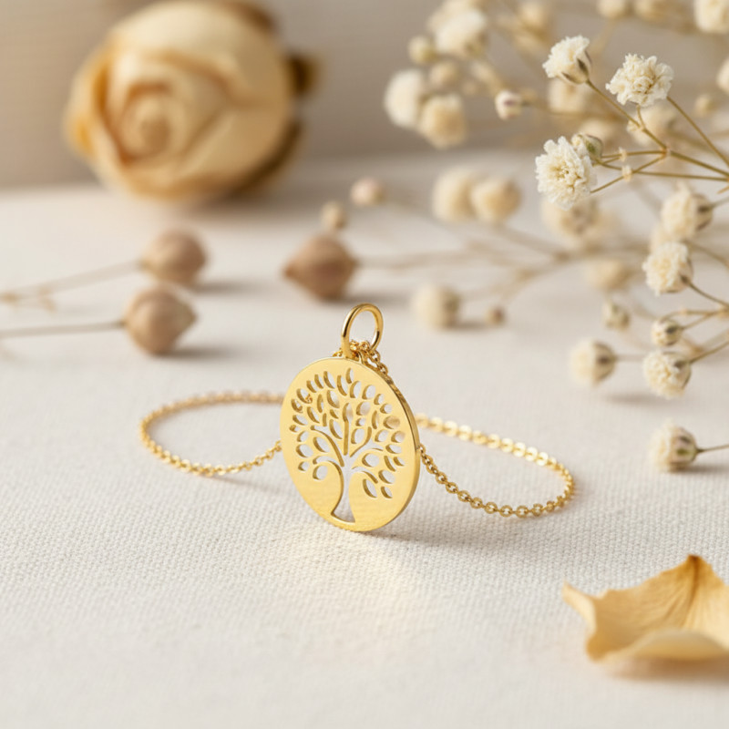 Alors découvrez ce sublime modèle signé Emanessence et réalisé entièrement en or jaune 750/1000 (18K). Cette médaille de baptême au style chic et intemporel vous accompagnera partout ou vous irez. En effet, elle nous dévoile, par le biais de plusieurs motifs ajourés, un magnifique arbre de vie. Un modèle stylisé et minimaliste, chargé en significations. L'arbre de vie est un symbole présent dans les différentes religions. Il incarne le plus souvent l'immortalité et la rédemption, et attire également la chance, la paix et l'amour. C'est un véritable porte-bonheur qui fera un cadeau parfait à offrir lors d'une occasion spéciale, comme un anniversaire, une naissance ou encore une cérémonie religieuse. En ce qui concerne ses dimensions, la médaille mesure 15 mm de diamètre et possède un poids d'or moyen de 0,55 gramme.