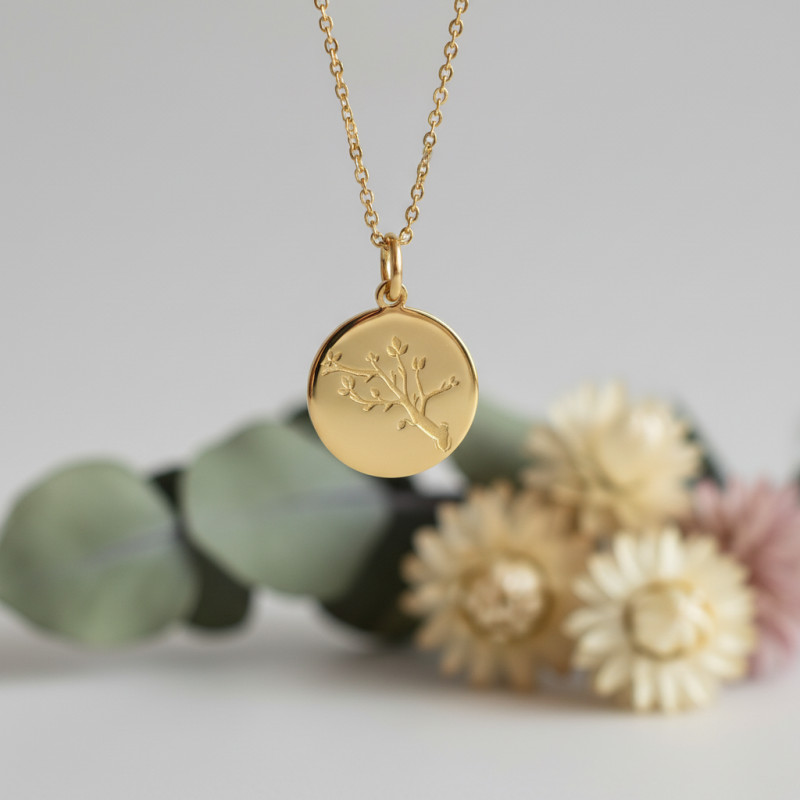 Médaille Arbre de vie au rameau, Or Jaune 750, 18mm