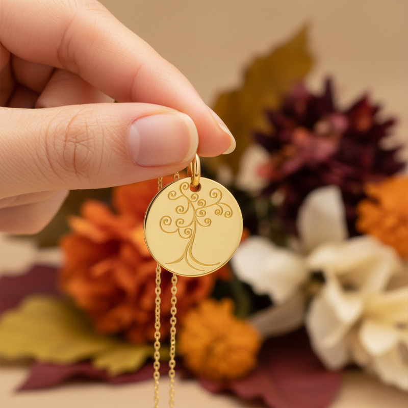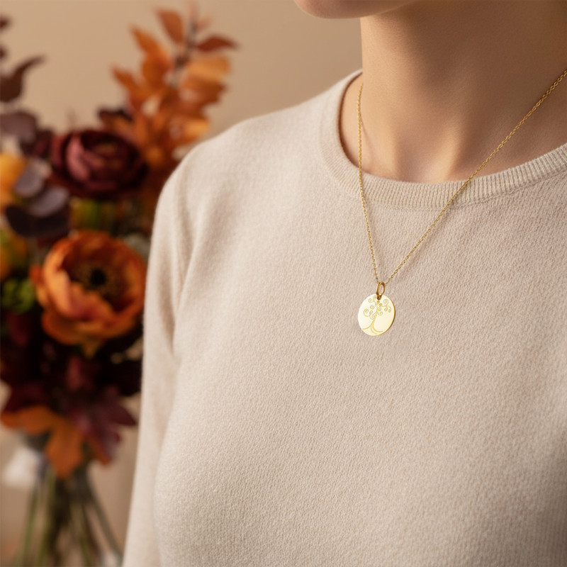 Nous sommes heureux de vous proposer notre douce sélection de médaille de baptême ! Comme cette douce médaille réalisée entièrement en or jaune 750/1000 (18K) qui est de forme ronde. Elle a la particularité de représenter un arbre de vie fantaisie. Vous trouverez un arbre avec des branches ondulée et délicates. Symbolisant la force de la vie et ses origines, cette médaille est un cadeau idéal pour une naissance, un baptême ou encore une communion.