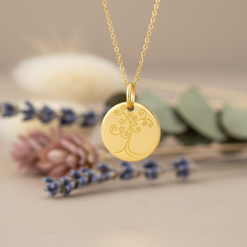 Médaille Arbre de Vie Fantaisie, Or Jaune 750, 16mm