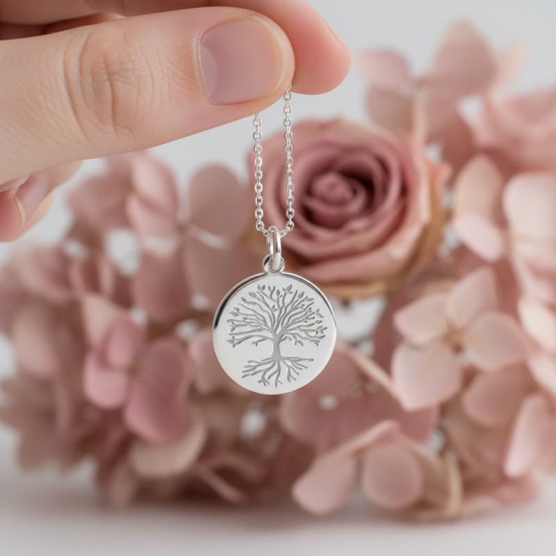 Elle vous propose de tomber sous le charme de cette somptueuse médaille réalisée entièrement en or blanc 750/1000 (18K). Elle nous dévoile sur son recto un doux motif représentant un arbre de vie gravé avec précision. Vous apercevrez les racines de l'arbre ainsi que quelques feuilles. L'arbre de vie est symbolique puisqu'il représente le lien entre la terre avec ses racines et le ciel. L'épaisseur de la médaille est de 0,45 mm, ce qui en fait un bijou très agréable à porter. La maison Argyor vous propose cette médaille de baptême dans un diamètre de 16 mm ou de 18 mm à choisir en déroulant simplement le menu de cette fiche.