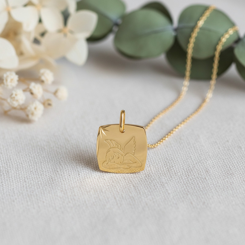 Découvrez cette jolie médaille ange assoupi dont le charme est authentique. Elle est faite en or jaune avec une qualité soit de 375/1000 (9K) avec un poids moyen de 1,10 gramme ou de 750/1000 (18K) avec un poids moyen de 1,30 gramme. De forme carrée, ce bijou présente la gravure d'un ange assoupi avec des ailes déployées. C'est un symbole de protection connu par de nombreux chrétiens.