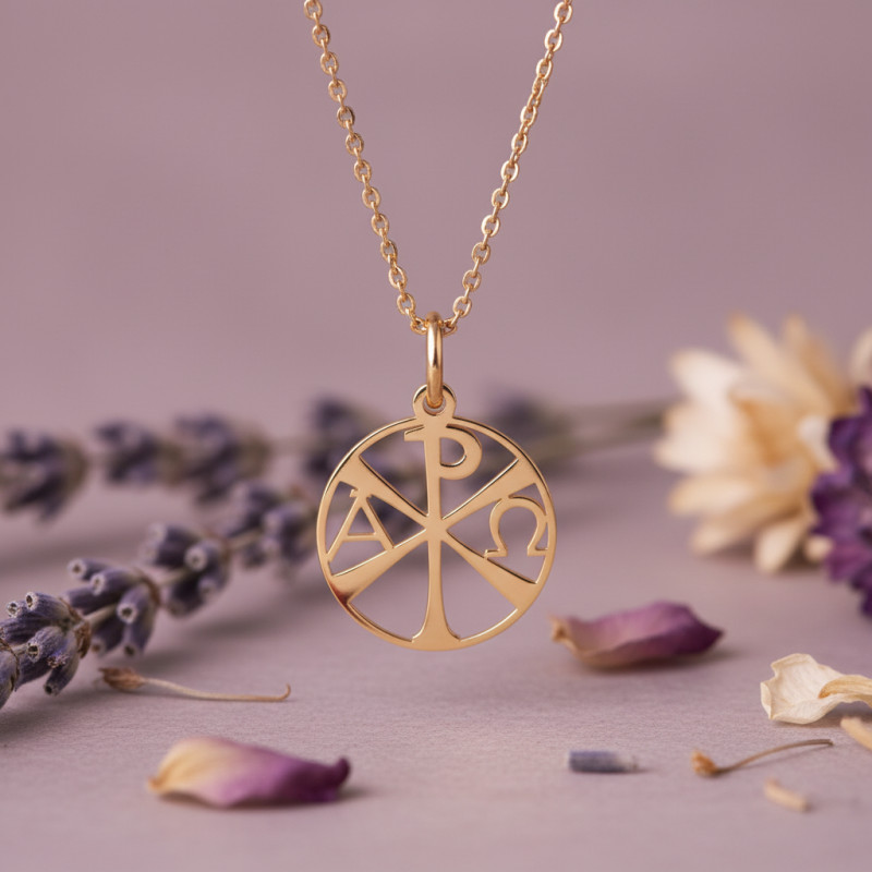 Si vous aimez le symbole du Chrisme vous allez adorer le style original de cette médaille baptême ajourée en or jaune 750/1000 (18K) de la maison espagnole Argyor. Aussi connu sous le nom de monogramme du Christ, ce symbole chrétien est composé des lettres grecques X (chi) et P (rhô) superposées et qui sont les premières lettres du mot Christ. Ce signe est accompagné de l'Alpha et de l'Oméga qui constituent la première et la dernière lettre de l'alphabet grec.