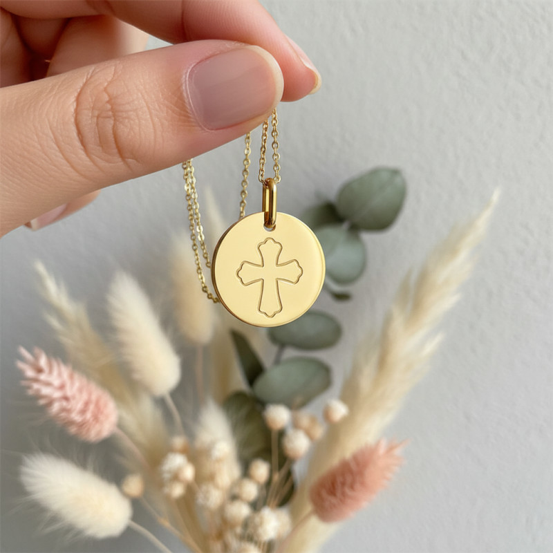 La marque française Lucas Lucor propose des créations de qualité, exclusivement fabriquées dans l'Hexagone. Découvrez notamment cette médaille de baptême ronde en or jaune 750/1000 (18K) qui représente une croix aux branches arrondies, gravée sur la surface polie.La croix est le symbole de la foi chrétienne.