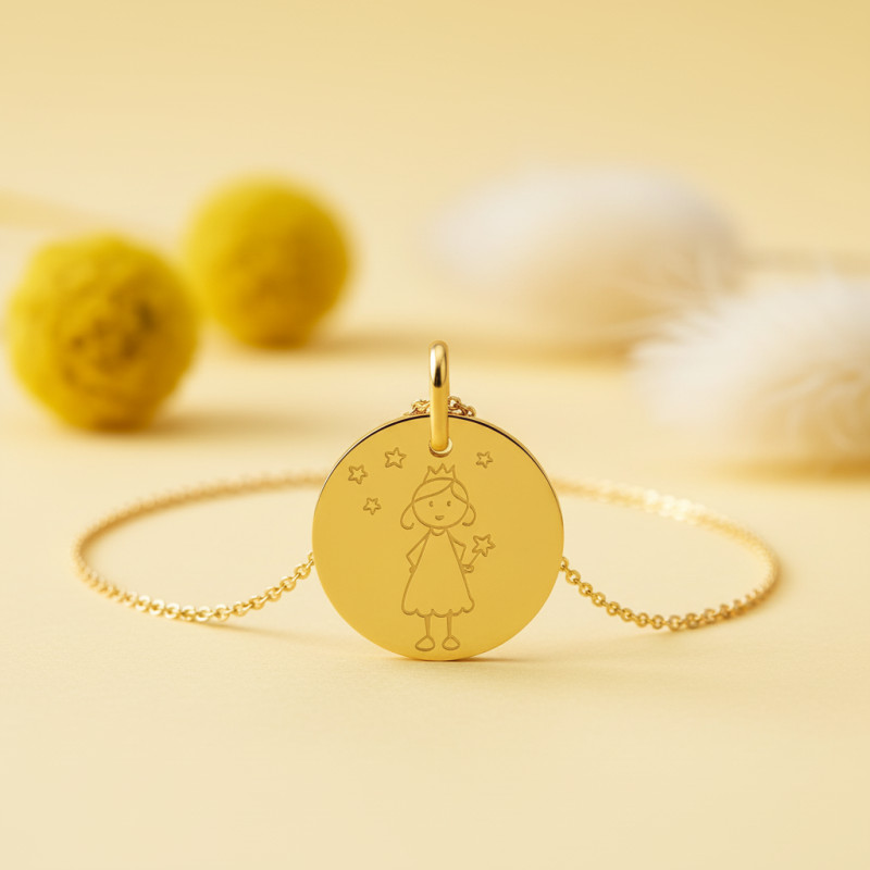 Outre son design léger et enfantin, il permet de faire graver le message de votre choix au dos. Médaille précieuse vous offre la gravure pour l'achat de ce bijou. Profitez-en !