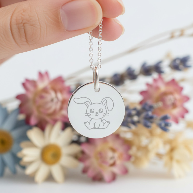 Nous avons choisi en collaboration avec la maison Lucas Lucor de vous proposer cette douce médaille enfant. Elle a été réalisé en or blanc 375/1000 (9K) ou 750/1000 (18K) pour répondre à toutes les envies. Elle a été réalisé dans un diamètre de 16 mm pour qu'elle puisse être portée sans déranger. Vous trouverez sur son recto une charmante représentation d'un petit lapin mignonnet qui va plaire à tous les enfants. Cette médaille de baptême peut aussi bien être offert à une petite fille qu'à un petit garçon.