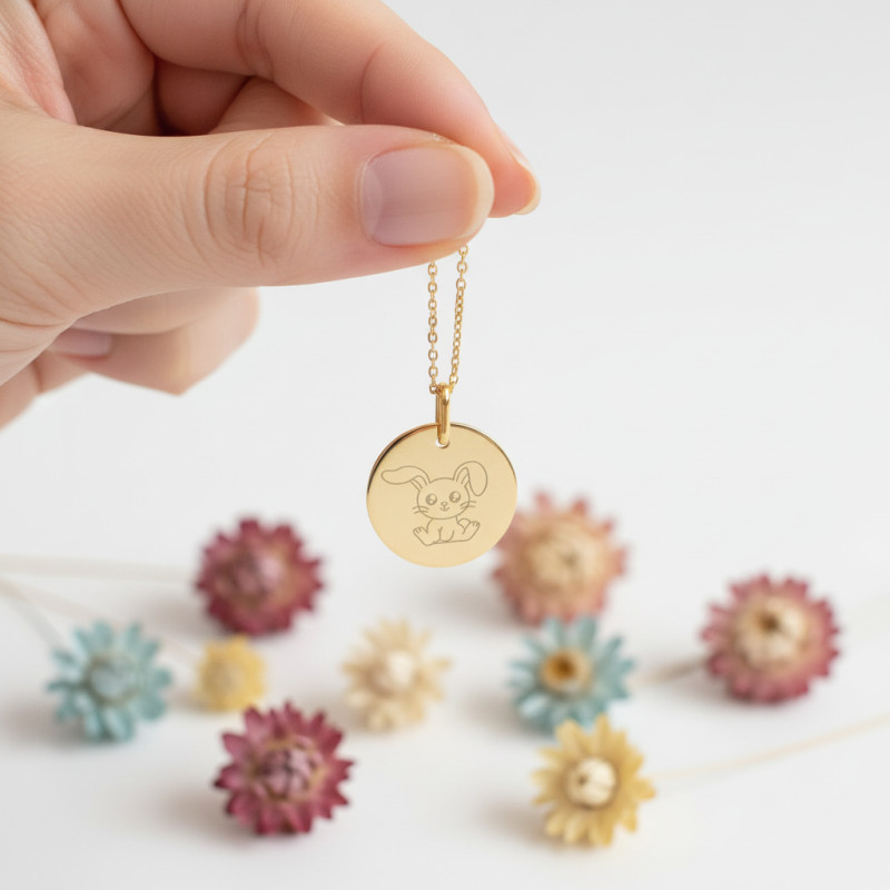 Nous avons choisi en collaboration avec la maison Lucas Lucor de vous proposer cette médaille de baptême. Cette médaille enfant est réalisée entièrement en or jaune 375/1000 (9K) ou 750/1000 (18K) selon vos envies pour scintiller longtemps. Elle est conçue spécialement pour les enfants puisqu'elle met en scène sur son recto la représentation d'un tout petit lapin très mignon. Ce lapin plaira à coup sûr à tous les enfants, aussi bien aux filles qu'aux garçons. La médaille dispose d'un diamètre de 16 mm pour qu'elle ne dérange pas l'enfant.