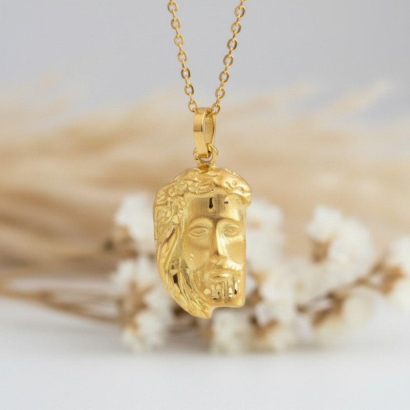 Ensemble, nous vous présentons cette ravissante médaille. Elle est réalisée en or jaune 750 en illustrant le visage de Jésus de Nazareth ainsi que sa magnifique chevelure. À la finition brossée et polie, elle mesure 25 mm de hauteur pour une largeur de 17 mm.