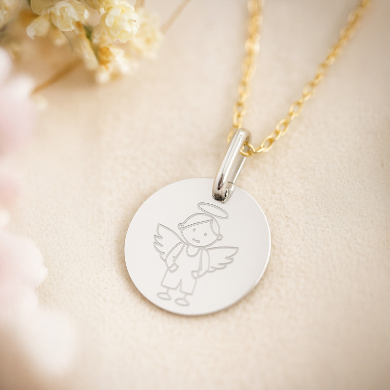 Vous pourrez la faire graver gratuitement par notre atelier. Ce bijou sera parfait pour être offert comme premier cadeau lors d'une communion ou d'un baptême.