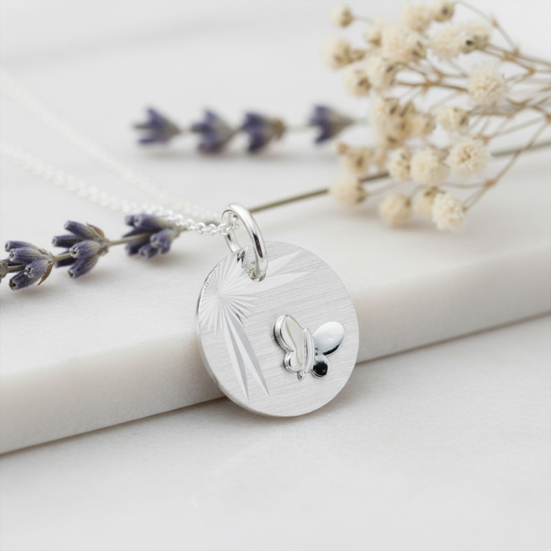 Elle vous propose de succomber au charme de cette médaille réalisée entièrement en or blanc 375/1000 (9K). L'or 375/1000 (9K) vous permet de garder l'éclat du bijou intact durant de longues années. Cette médaille baptême est de forme ronde et dévoile un diamètre de 14 mm. Au centre, vous trouverez un motif représentant papillon aux ailes déployées avec une représentation stylisée d'un rayon de soleil venant lui réchauffer les ailes. Cette médaille pour enfant est un véritable symbole d'insouciance et de liberté.