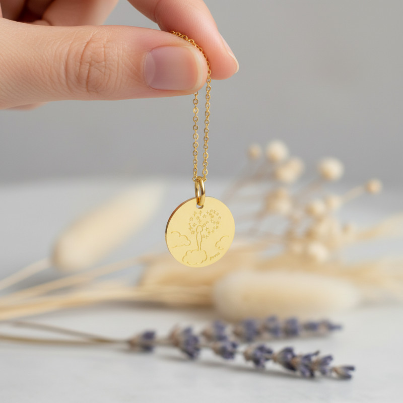 Nous vous proposons donc cette ravissante médaille, entièrement réalisée en or jaune 750/1000. Ce modèle vous révèle en son milieu, une petite fille se tenant debout sur les nuages et entourée de plusieurs étoiles, formant un cœur. C'est un bijou à la symbolique douce et délicate, que vous pourrez offrir à un enfant à l'occasion de son anniversaire ou d'une cérémonie par exemple. En ce qui concerne ses dimensions, cette médaille possède un diamètre de 16 mm, pour un poids d'or moyen de 0,95 gramme. Soit un modèle fin et léger, adapté à tous.