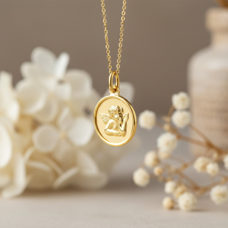 Médaille Ronde Ange Raphaël, Or jaune 750, 15mm