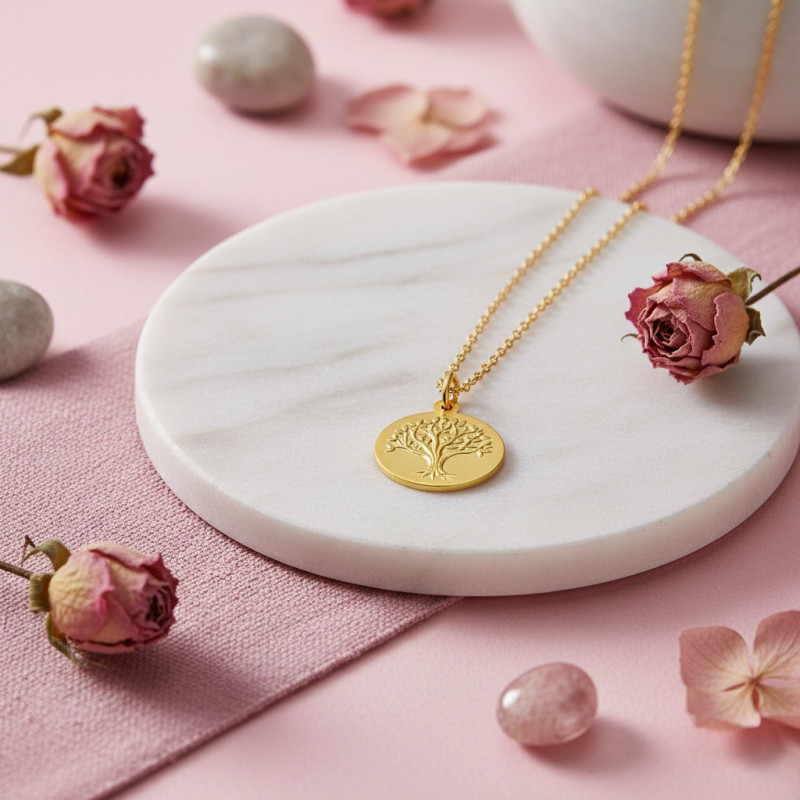 Argyor détaille un symbole universel et intemporel : celui de la vie. En or jaune 750/1000 (18K) et dotée d'une bélière ovale, cette médaille dépeint l'arbre de vie avec ses racines originelles ancrées au sol et ses branches s'élevant au ciel, très enfeuillées. Symbolique, cette pièce représente l'épanouissement et l'accomplissement par la force et l'équilibre. Cette médaille Arbre de Vie Argyor est un cadeau d'excellence en toute circonstance (naissance, baptême ou communion). Avec un diamètre de 18 mm ce bijoux pèse environ 2,10 grammes.