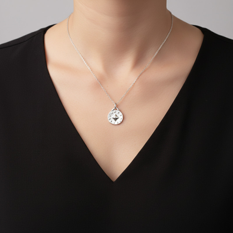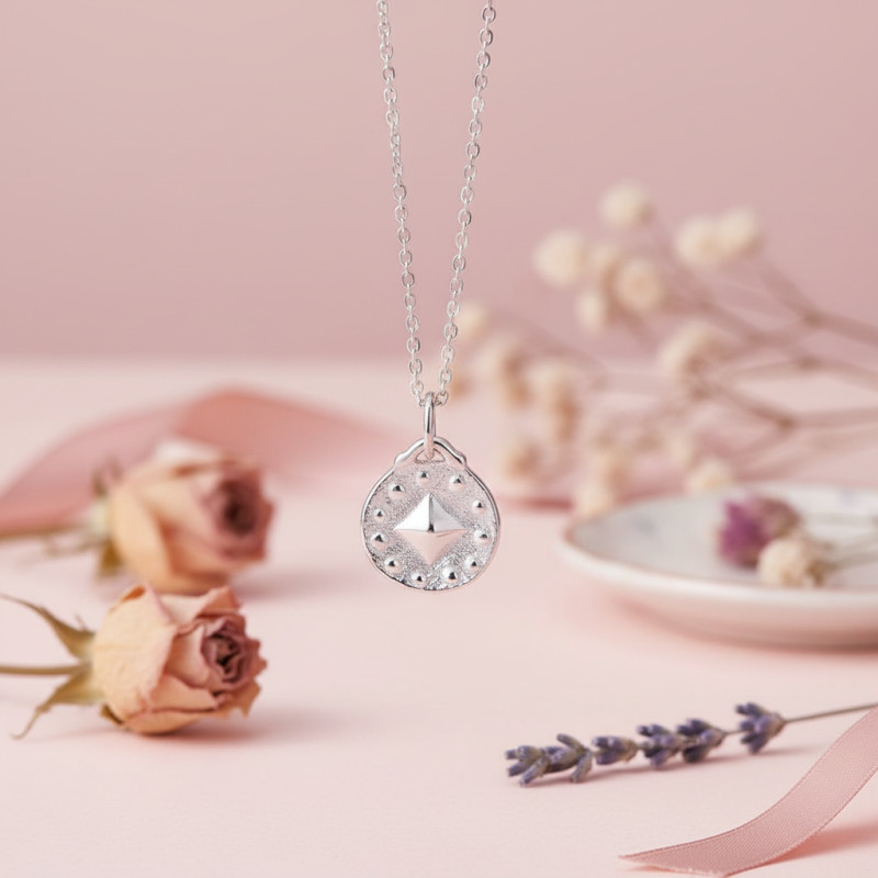 Découvrez alors cette magnifique médaille de forme ronde, conçue en argent 925/1000. Ce modèle, au style ancien et martelé, vous dévoile en son milieu le carreau qui est l'un des quatre symboles que l'on retrouve dans un jeu de cartes. De plus, 11 petits points en relief viennent se dessiner sur le pourtour du pendentif. C'est un très beau bijou que vous pourrez offrir à une personne passionnée par l'univers des jeux et des paris. Ce modèle dispose des dimensions suivantes, soit un diamètre de 15 mm pour un poids d'argent moyen de 2 grammes. Choisissez donc une chaine dont le poids est supérieur ou égal au pendentif. En effet nous vous invitons à découvrir notre espace dédié aux chaines en argent afin de trouver le modèle idéal qui correspondra à vos gouts.