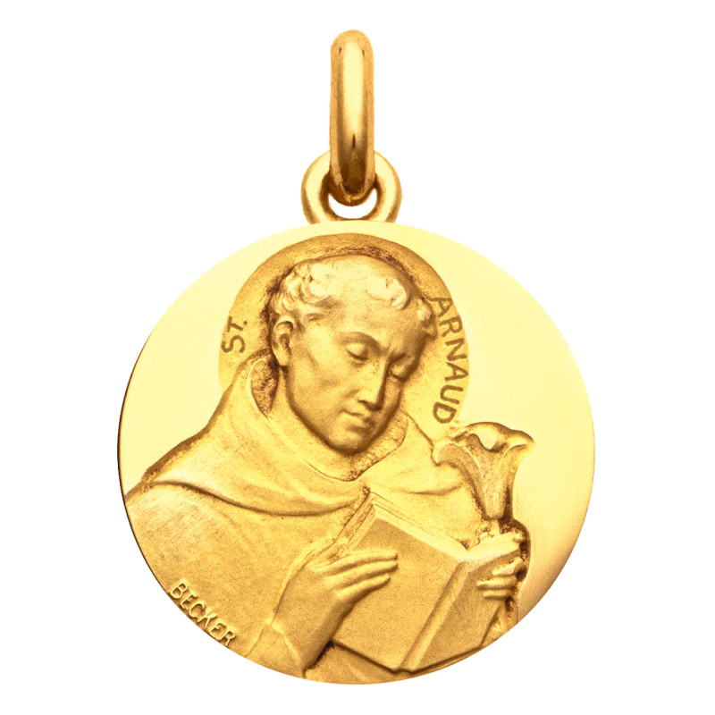 Le choix de l'or jaune 750, correspondant à 18 carats, souligne l'éclat luxueux du métal. Cette composition riche et précieuse fait ressortir la gravure délicate du livre ouvert que tient Saint Arnaud dans sa main, symbole de connaissance et d'illumination. Souvent associée à la pureté et à la sagesse, l'or magnifie la médaille en lui donnant un aspect intemporel. Que ce soit pour célébrer un événement religieux, un anniversaire ou simplement comme un geste d'affection, offrir une médaille en or est un cadeau empli de signification et de valeurs durables.