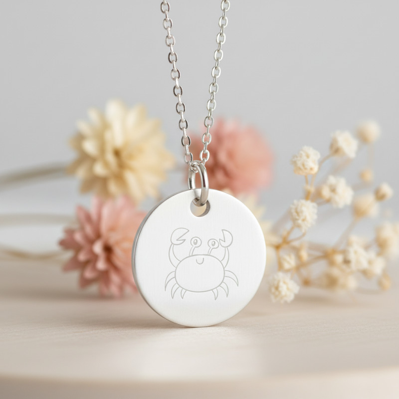 La médaille signe astrologique Cancer est le premier cadeau parfait pour les amateurs de bijoux marins et astrologiques. Que ce soit pour un anniversaire, une célébration spéciale ou pour exprimer votre affection, ce bijou saura toucher le cœur de celui ou celle qui le recevra. Notre atelier vous offre la gravure au verso pour la rendre unique et personnalisée.