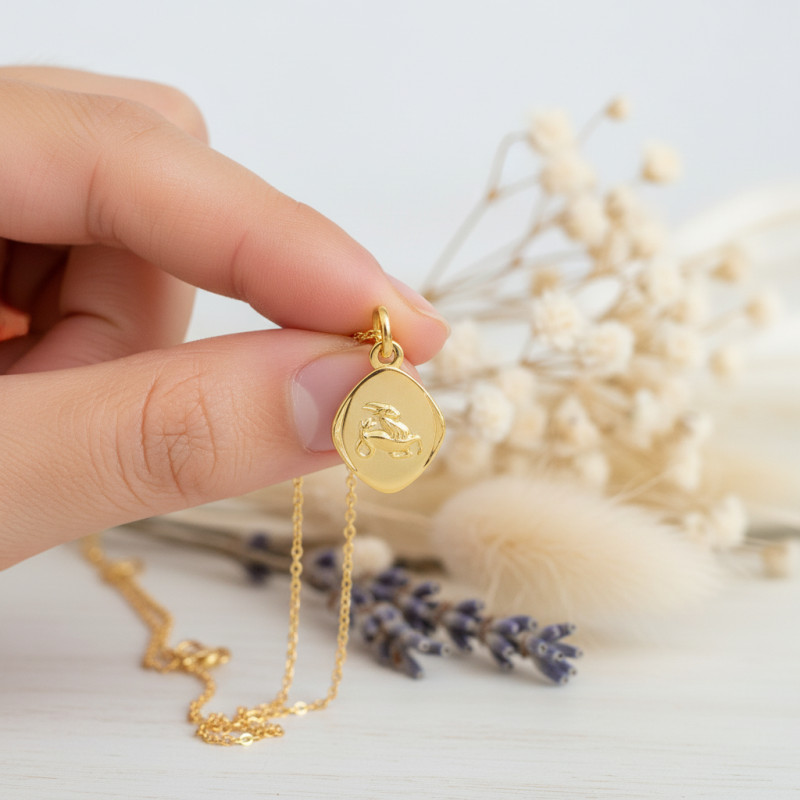 Ce capricorne, qui annonce l'arrivée de l'hiver, peut faire un très beau cadeau lors d'un baptême ou d'une naissance. Notez que cette médaille dorée a un poids de 1,30 gramme et ses bordures sont polies et facettées. Son signe au centre arbore une créature mi-bouc mi-poisson inspirée du mythe oriental ancien. Vous aurez la possibilité de la graver avec l'inscription de votre choix.