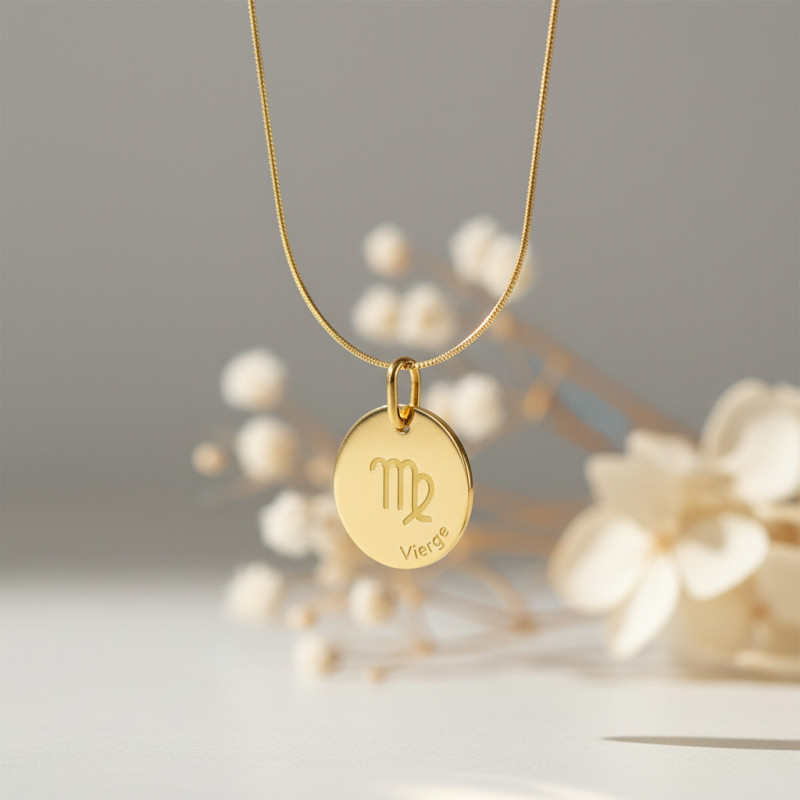Aujourd'hui elle a choisi de vous proposer cette médaille signe astrologique réalisé en or jaune. Ce bijou vous est proposé en or jaune 375/1000 (9K) ou 750/1000 (18K) selon vos envies. Cette médaille dispose d'un diamètre de 16 mm ainsi qu'une bélière ovale. Ici, le signe mit à l'honneur n'est autre que le signe de la Vierge. La Vierge est le signe astrologique des personnes nées entre le 23 août et le 22 septembre. Vous pourrez offrir cette médaille pour un baptême ou un anniversaire.