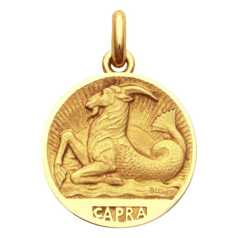 Spécialiste dans la fabrication de médailles, la marque de renom Becker vous présente cette médaille signe du zodiaque en or jaune 750/1000 (18K). Il représente le signe astrologique du capricorne, un signe de terre représenté par une chèvre-poisson. Il est gouverné par la planète Saturne et concerne les personnes nées entre le 22 décembre et le 20 janvier.