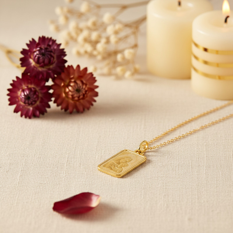 De forme rectangulaire, cette médaille Vierge à l'enfant affiche un poids d'or moyen de 0,85 gramme et possède une bélière ovale qui vous permettra de la glisser facilement sur une chaîne. Ravissante, elle sera un beau cadeau à offrir pour un baptême ou une communion ou même un anniversaire.